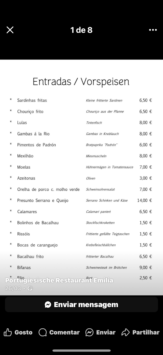 Customer reviews rave about the high quality at reasonable prices, emphasizing that every dish is crafted with love and authentic ingredients. Restaurante Português Emília isn’t just a restaurant; it’s a culinary journey that every Portuguese food lover should experience. Don't miss your chance to savor true Portuguese flavors in the heart of Germany!